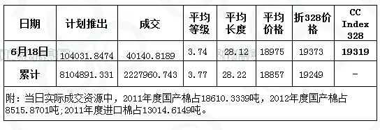 儲(chǔ)備棉投放日評(6.18):成交比例續(xù)升 日成交量升至4萬噸以上
