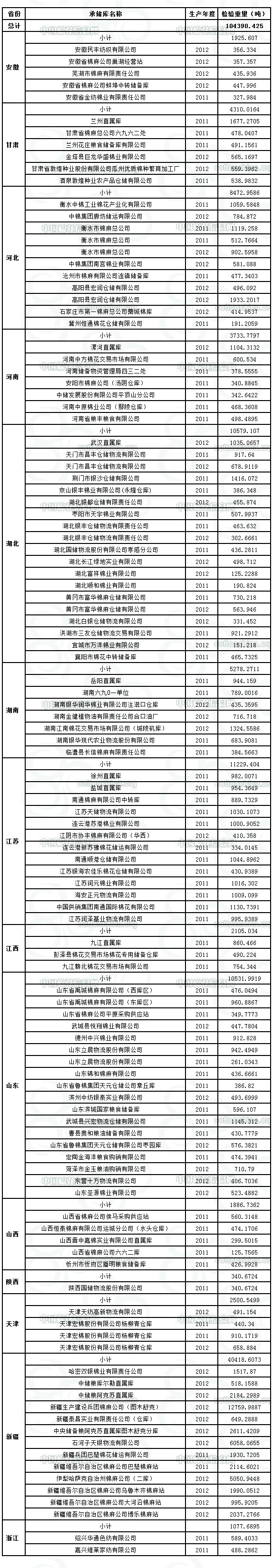 中國儲備棉管理總公司定于6月21日出庫銷售儲備104390.425噸,其中,2011年度國產(chǎn)棉33793.5486噸,2012年度國產(chǎn)棉56651.5408噸,2011年度進(jìn)口棉13945.3356噸。相關(guān)批次公檢數(shù)據(jù)見附件。具體庫點(diǎn)如下: