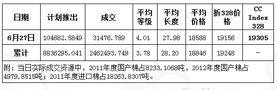 儲備棉投放日評(6.27):成交比例續(xù)降 進口棉成交83.88%
