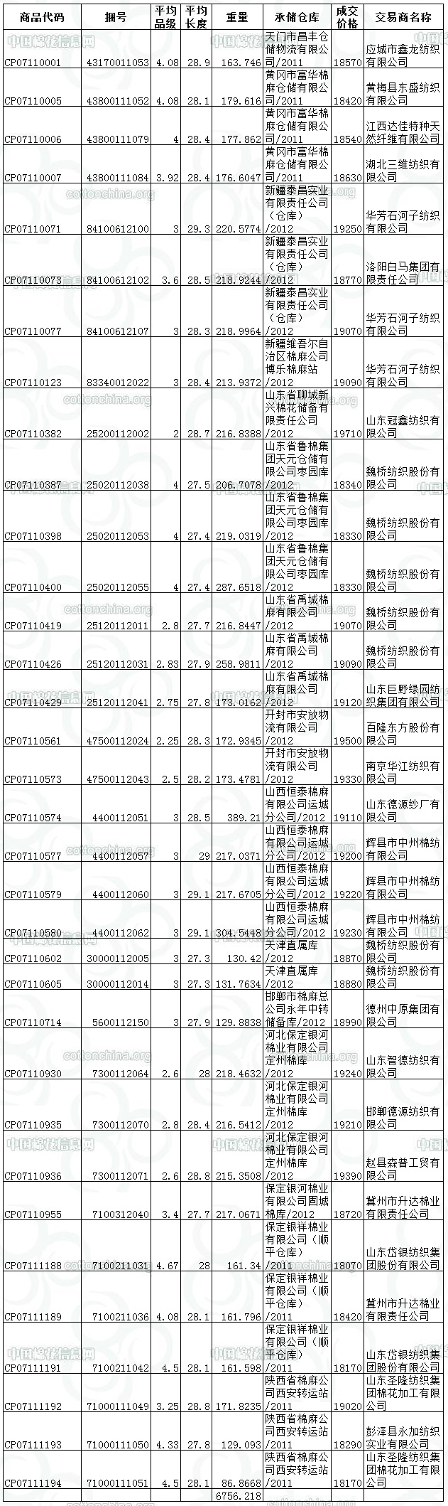 7月11日儲(chǔ)備棉投放成交結(jié)果