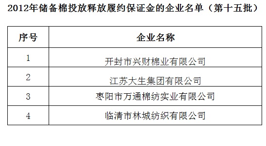2012年儲備棉投放釋放履約保證金的企業(yè)名單(第十五批)