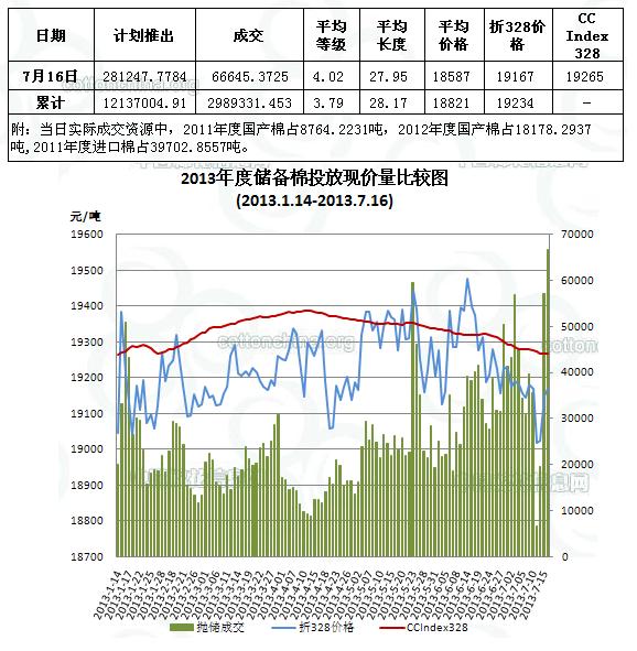 儲備棉投放日評(7.16):成交比例繼續(xù)提高 單日成交量創(chuàng)年內之最