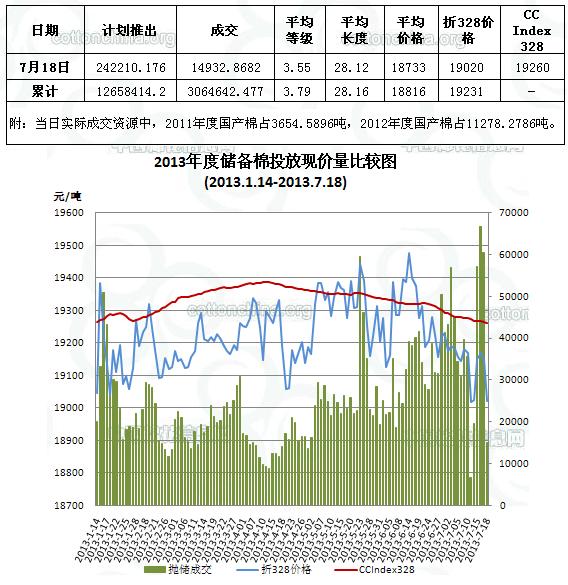 儲備棉投放日評(7.18):成交比例大幅下降 折328價走低