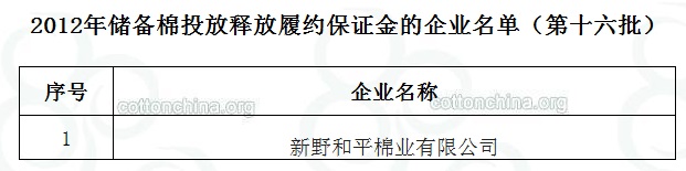 2012年儲(chǔ)備棉投放釋放履約保證金的企業(yè)名單(第十六批)