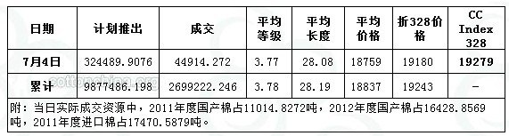 儲(chǔ)備棉投放日評(píng)(7.4):競(jìng)拍熱度不高 均價(jià)下降