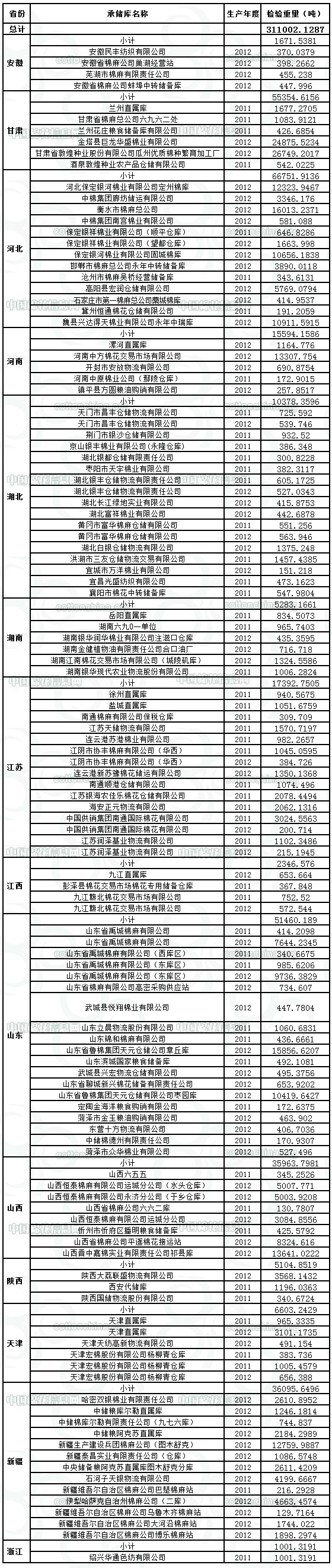 中國儲備棉管理總公司定于7月5日出庫銷售儲備311002.1287噸。相關(guān)批次公檢數(shù)據(jù)見附件。具體庫點如下: