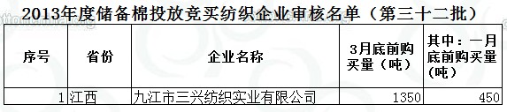 2013年度儲(chǔ)備棉投放競買紡織企業(yè)審核名單(第三十二批)