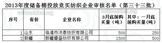 2013年度儲備棉投放競買紡織企業(yè)審核名單(第三十三批)