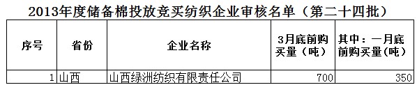 2013年度儲(chǔ)備棉投放競(jìng)買紡織企業(yè)審核名單(第二十四批)