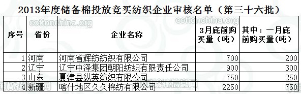 2013年度儲備棉投放競買紡織企業(yè)審核名單(第三十六批)