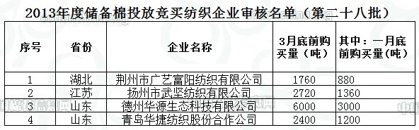 2013年度儲(chǔ)備棉投放競(jìng)買(mǎi)紡織企業(yè)審核名單(第二十八批)