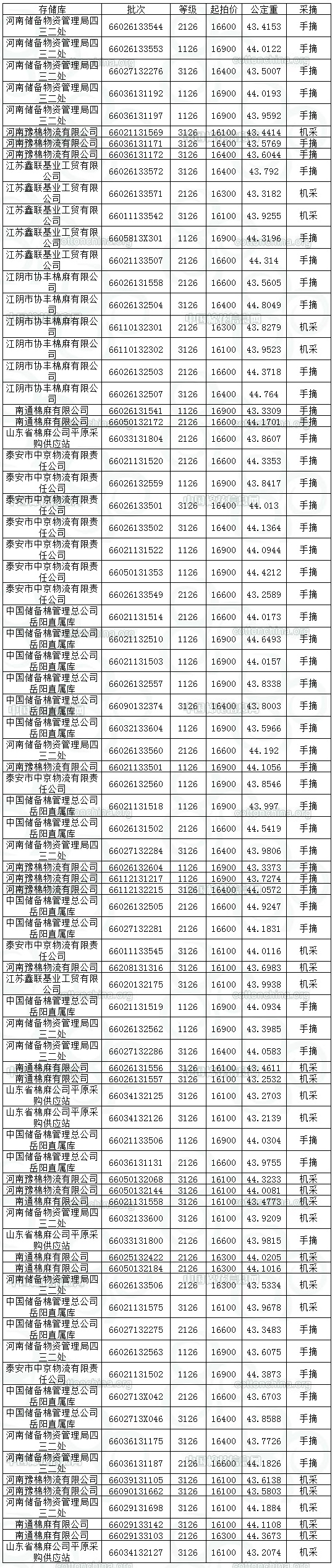 各交易商: 定于10月27日投放新疆兵團(tuán)競(jìng)賣棉花3512.4452噸,存儲(chǔ)庫(kù)全為內(nèi)地庫(kù)區(qū)。相關(guān)批次公檢數(shù)據(jù)見(jiàn)附件。具體庫(kù)點(diǎn)如下: