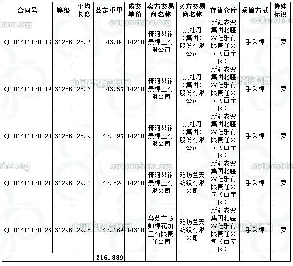 新疆棉競(jìng)賣(mài)交易評(píng)述(11.13):成交比例6.8% 均為新疆庫(kù)資源