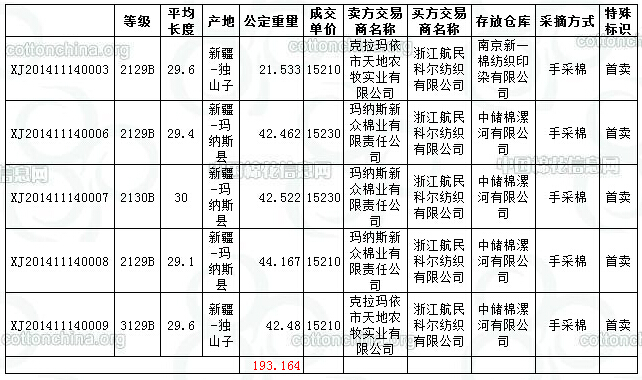 新疆棉競賣交易評(píng)述(11.14):成交比例6.35% 內(nèi)地庫資源競買活躍
