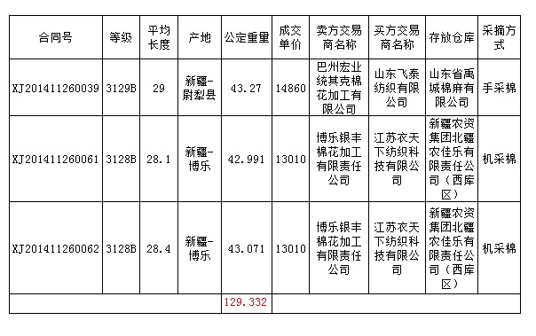 新疆棉競(jìng)賣交易評(píng)述(11.26):成交129噸 成交比例3.11%