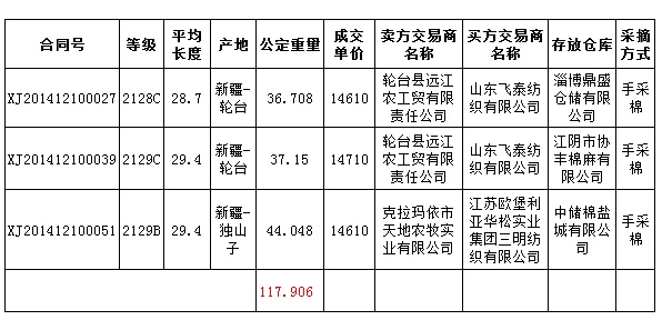 12月10日新疆棉競賣交易成交結果