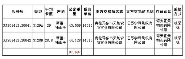 當(dāng)日成交資源2批,全部存放在內(nèi)庫(機(jī)采棉),加價(jià)10元/噸成交,占內(nèi)地庫當(dāng)日上市機(jī)采棉資源量的6.51%。