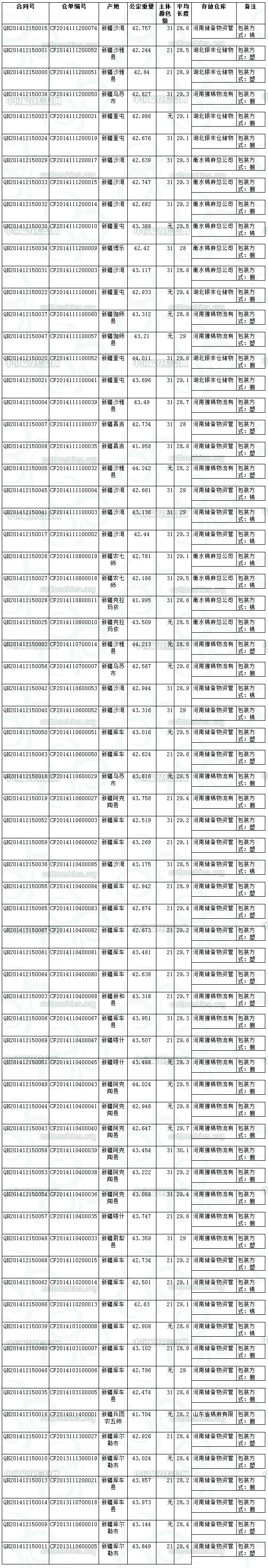 全國棉花交易市場定于12月15日推出期貨公檢棉競賣資源3013.505噸。最低起拍價14100元/噸。相關(guān)詳細(xì)數(shù)據(jù)見附件。具體庫點如下: