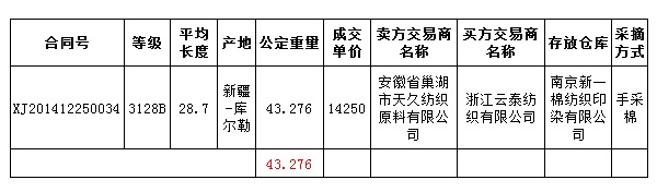 12月25日新疆棉競賣交易成交結(jié)果