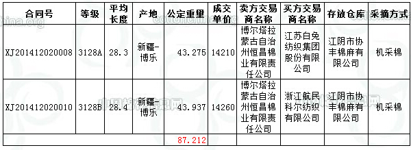 12月2日新疆棉競(jìng)賣交易成交結(jié)果