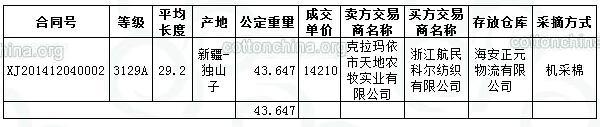 12月4日新疆棉競賣交易推出資源量為4608.9973噸,實(shí)際成交43.6470噸,成交比例0.95%;成交價(jià)14210元/噸,長度29.20。據(jù)中國棉花信息網(wǎng)統(tǒng)計(jì)顯示,截至12月4日,累計(jì)成交資源量為2485.011噸。 具體交易特點(diǎn)如下: 當(dāng)日成交資源1批,存放在內(nèi)地庫(機(jī)采棉),加價(jià)10元/噸成交,占內(nèi)地庫當(dāng)日上市機(jī)采資源量的12.65%。
