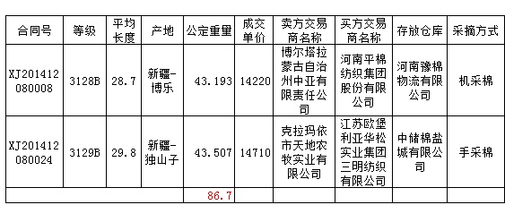 新疆棉競賣交易評述(12.8):成交87噸 成交比例下降