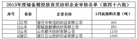 2013年度儲(chǔ)備棉投放競(jìng)買紡織企業(yè)審核名單(第四十六批)