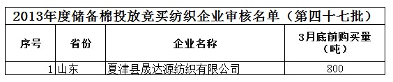 2013年度儲備棉投放競買紡織企業(yè)審核名單(第四十七批)
