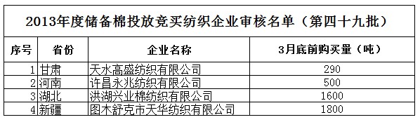 2013年度儲備棉投放競買紡織企業(yè)審核名單(第四十九批)