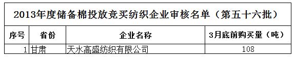 2013年度儲備棉投放競買紡織企業(yè)審核名單(第五十六批)