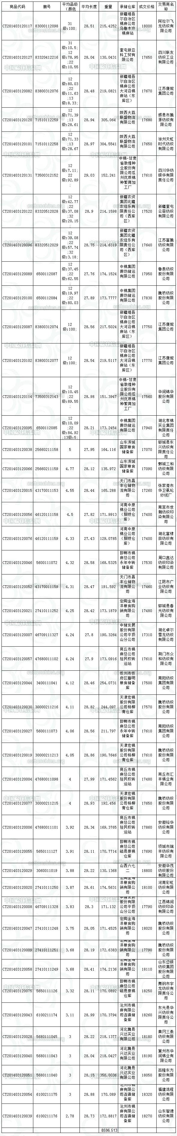 3月12日儲備棉投放成交結(jié)果