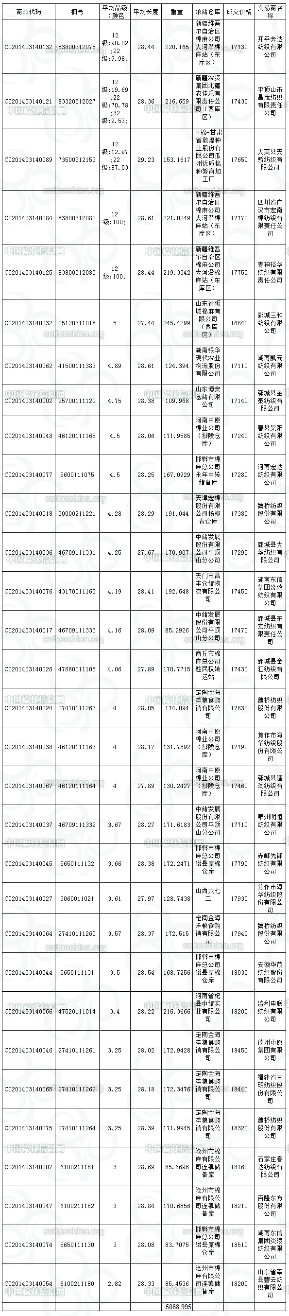 3月14日儲(chǔ)備棉投放成交結(jié)果