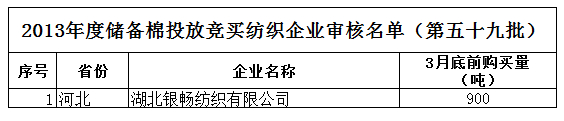 2013年度儲備棉投放競買紡織企業(yè)審核名單(第五十九批)