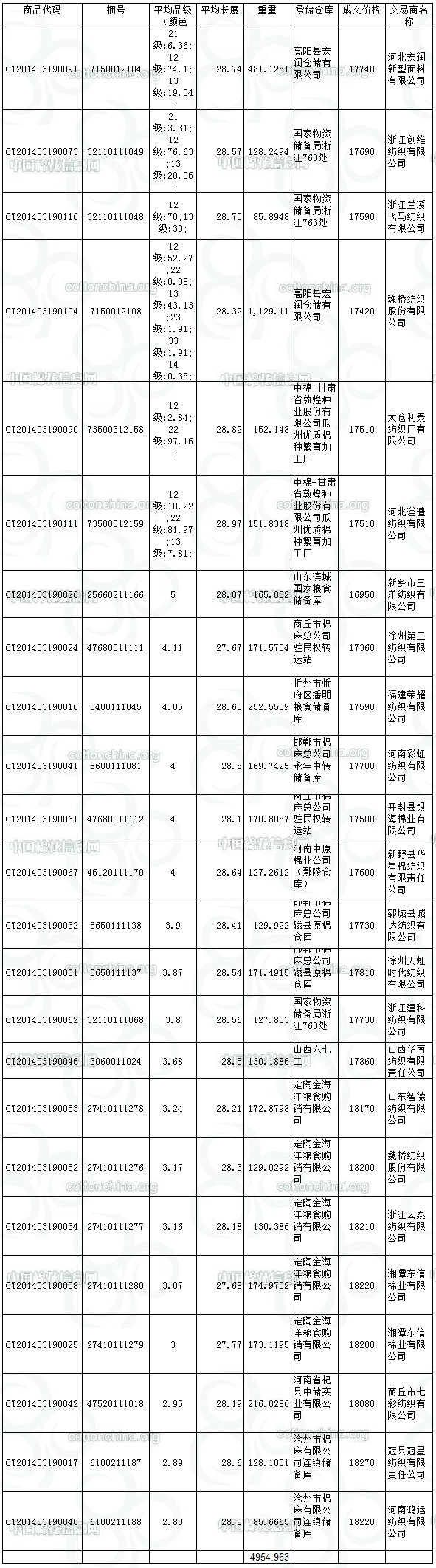 3月19日儲(chǔ)備棉投放成交結(jié)果