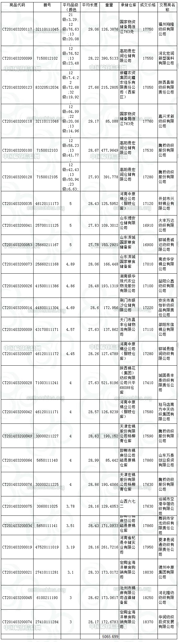 3月20日儲(chǔ)備棉投放成交結(jié)果