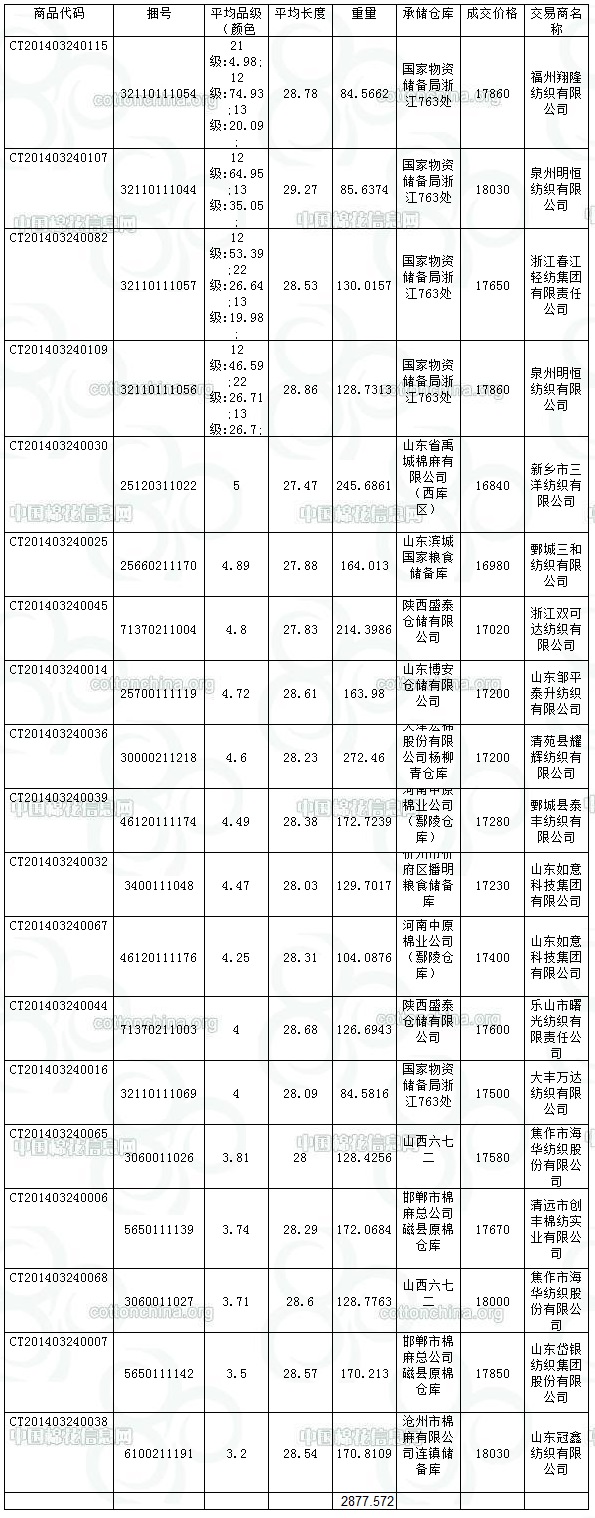 錦橋紡織網(wǎng)—資訊頻道> 棉花信息> 拋儲>正文 3月24日儲備棉投放成交結果