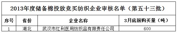 2013年度儲備棉投放競買紡織企業(yè)審核名單(第五十三批)