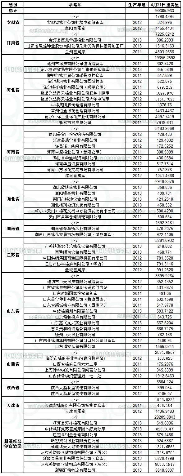 4月21日儲備棉計劃投放90386噸