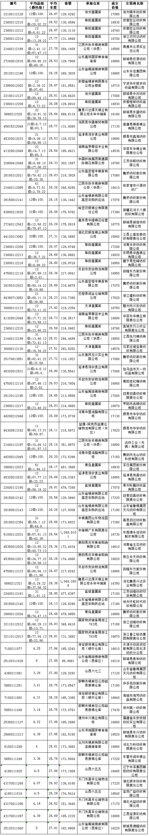 5月14日儲(chǔ)備棉投放成交結(jié)果
