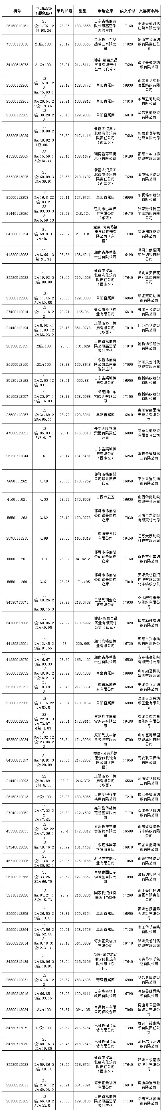 5月21日儲備棉投放成交結果