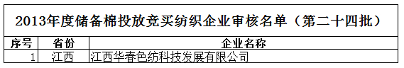 2013年度儲備棉投放競買紡織企業(yè)審核名單新(第二十四批)