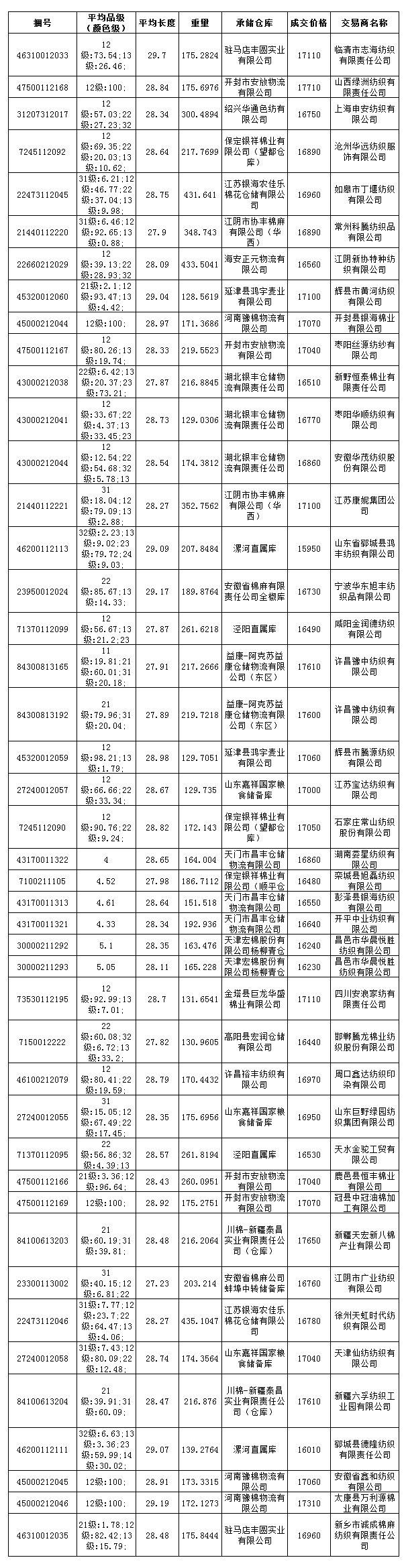 6月18日儲(chǔ)備棉投放成交結(jié)果