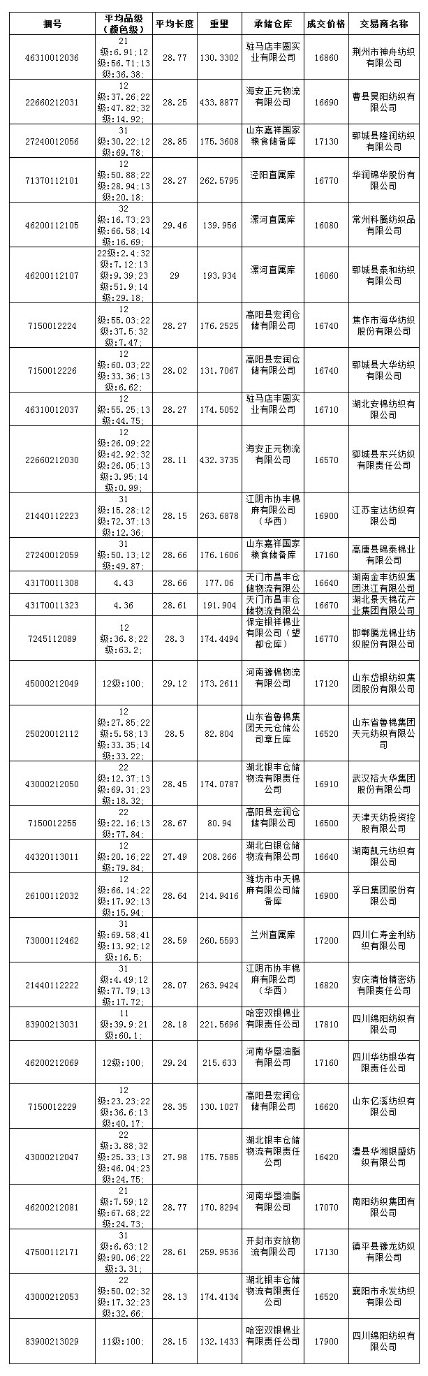 6月19日儲(chǔ)備棉投放成交結(jié)果