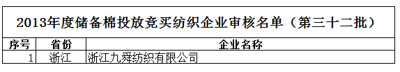 2013年度儲(chǔ)備棉投放競(jìng)買紡織企業(yè)審核名單新(第三十二批)