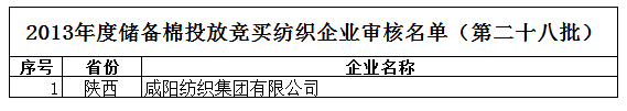 2013年度儲備棉投放競買紡織企業(yè)審核名單新(第二十八批)