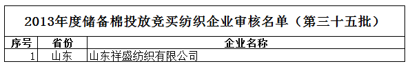 2013年度儲備棉投放競買紡織企業(yè)審核名單新(第三十五批)
