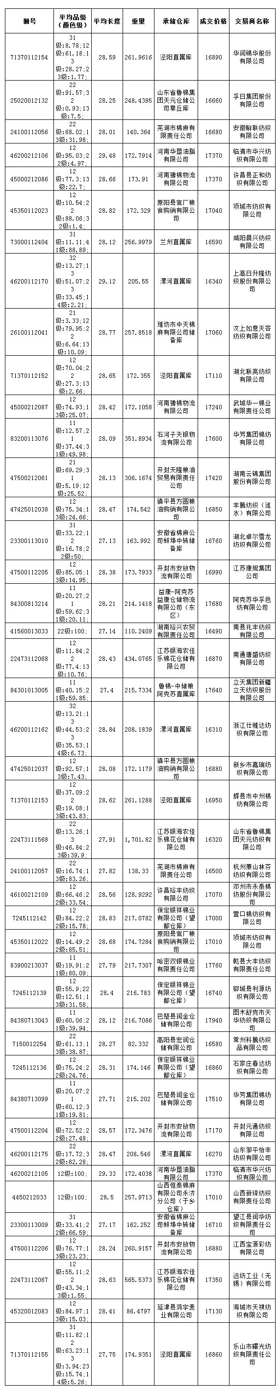 7月10日儲(chǔ)備棉投放成交結(jié)果