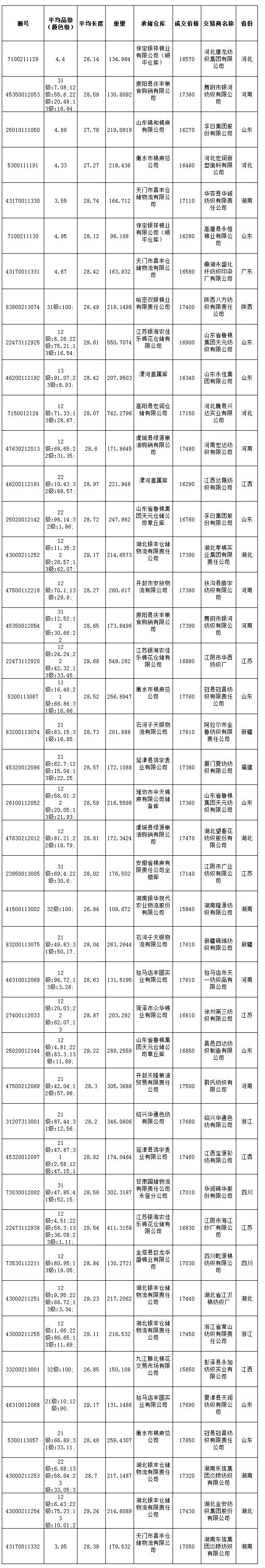 7月28日儲(chǔ)備棉投放成交結(jié)果