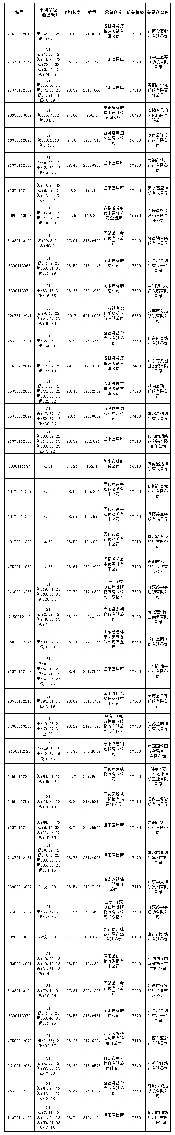7月30日儲備棉投放成交結(jié)果