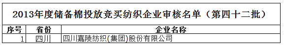 2013年度儲(chǔ)備棉投放競買紡織企業(yè)審核名單新(第四十二批)